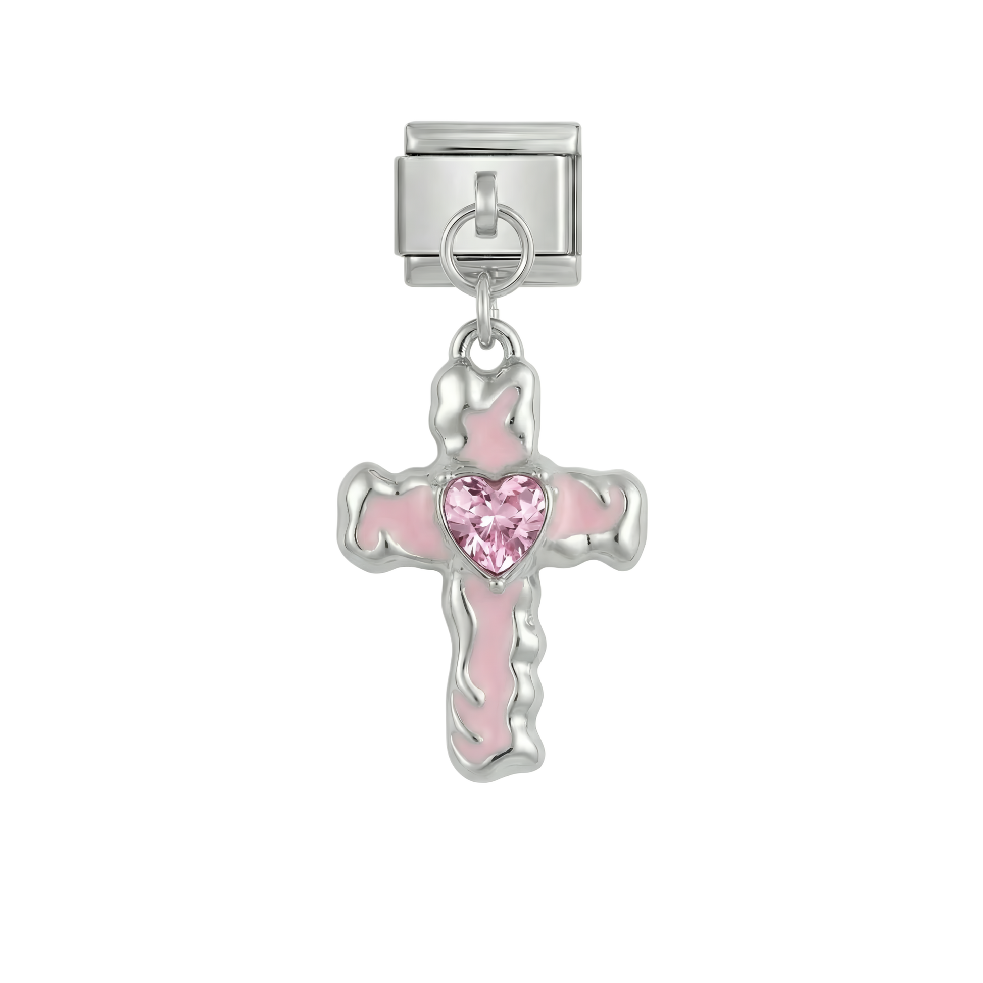 Pink Cross with Heart, on Silver